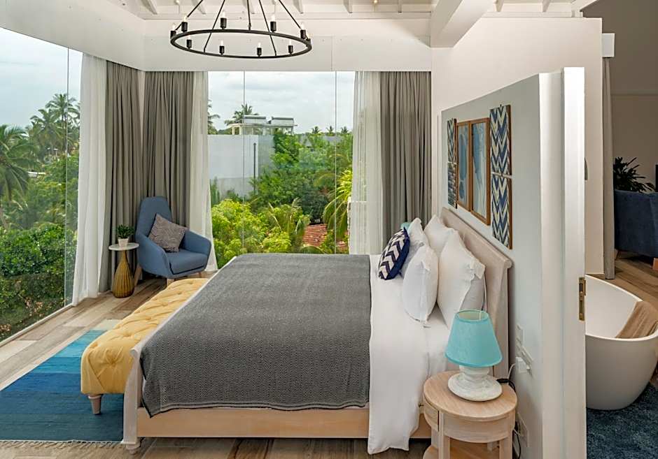 This suite has a private entrance, tile/marble floor and air conditioning.